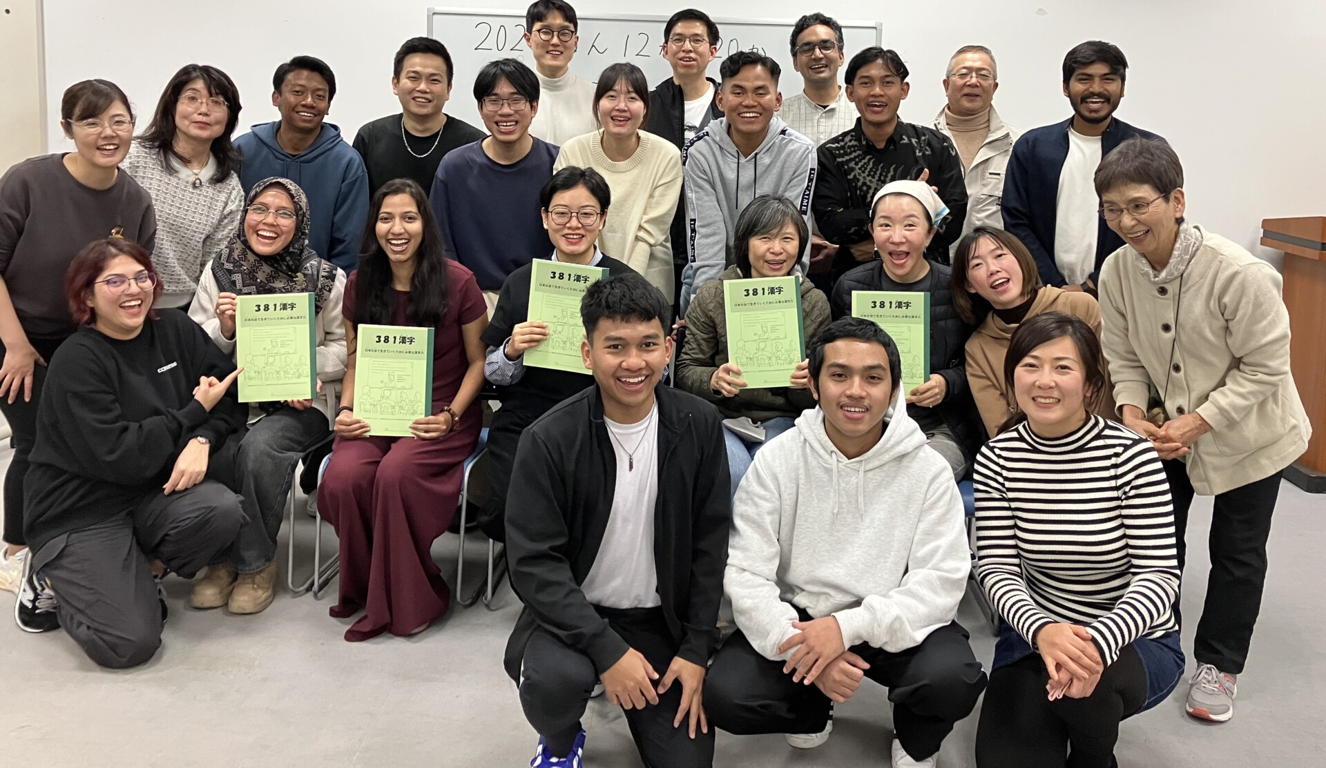 2025年文化交流会 学習発表会がくしゅう はっぴょうかい。 全員発表ぜんいん はっぴょうしました。日本語の勉強に全部出席ぜんぶ しゅっせきした人もいました。ほんとうにうれしいです。そして偉えらいです。 2025年 12月文化交流会この笑顔がすべてを物語っています。